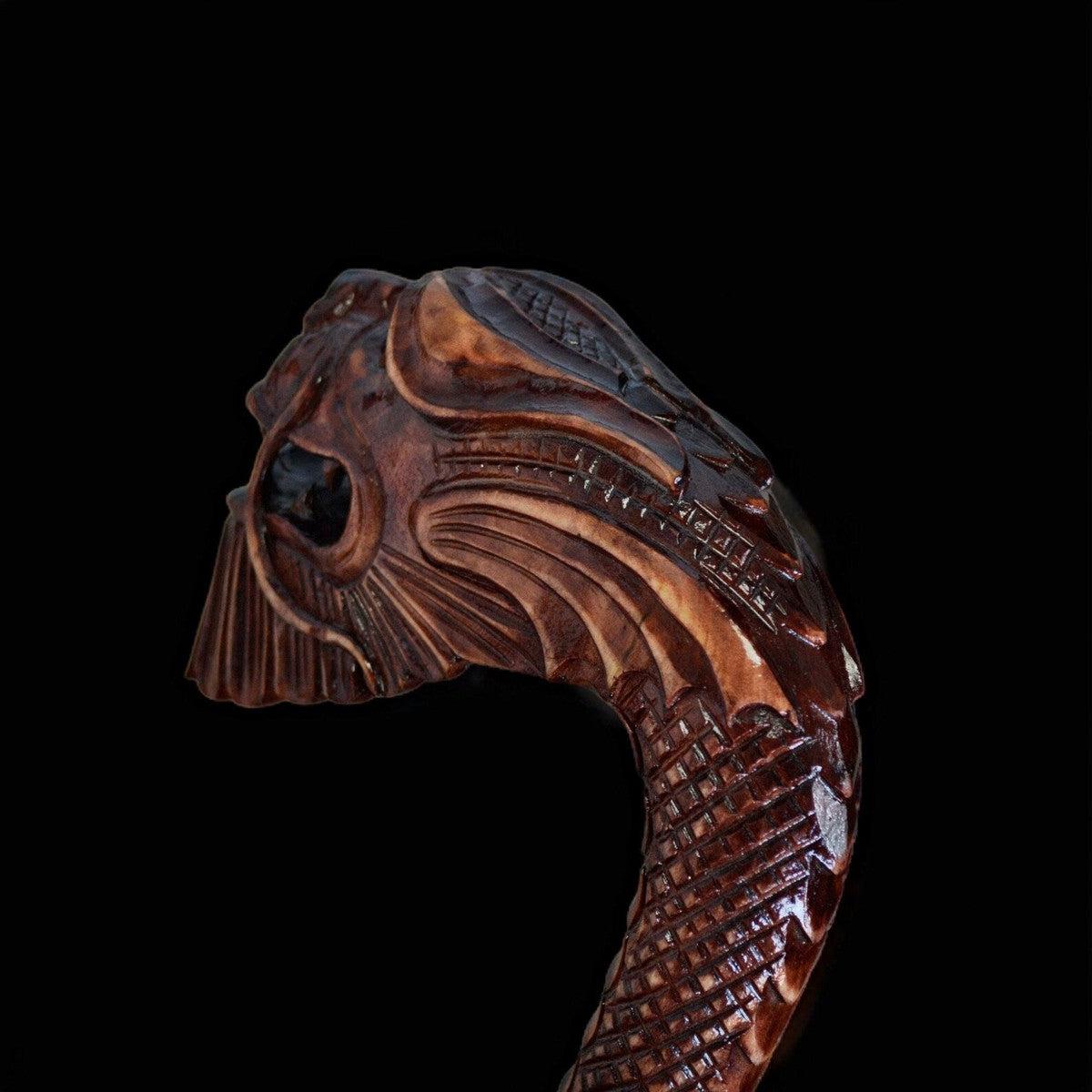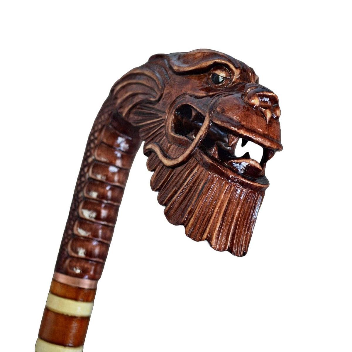 Chinese Dragon Hand-Carved Walking Stick - Oriental Wooden Cane
