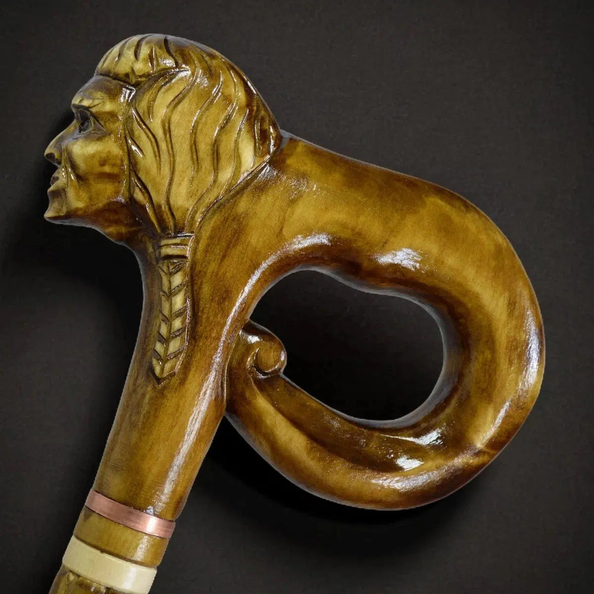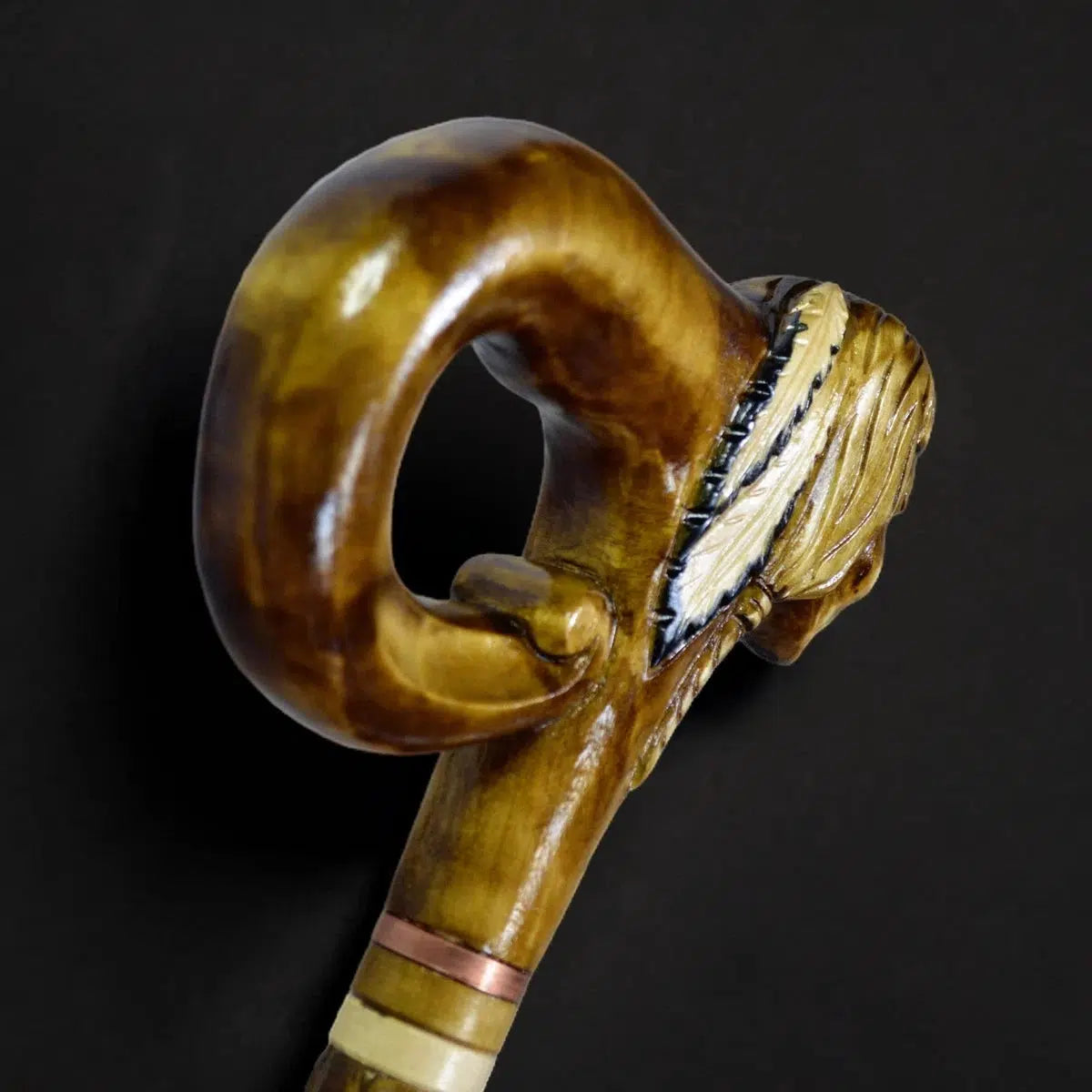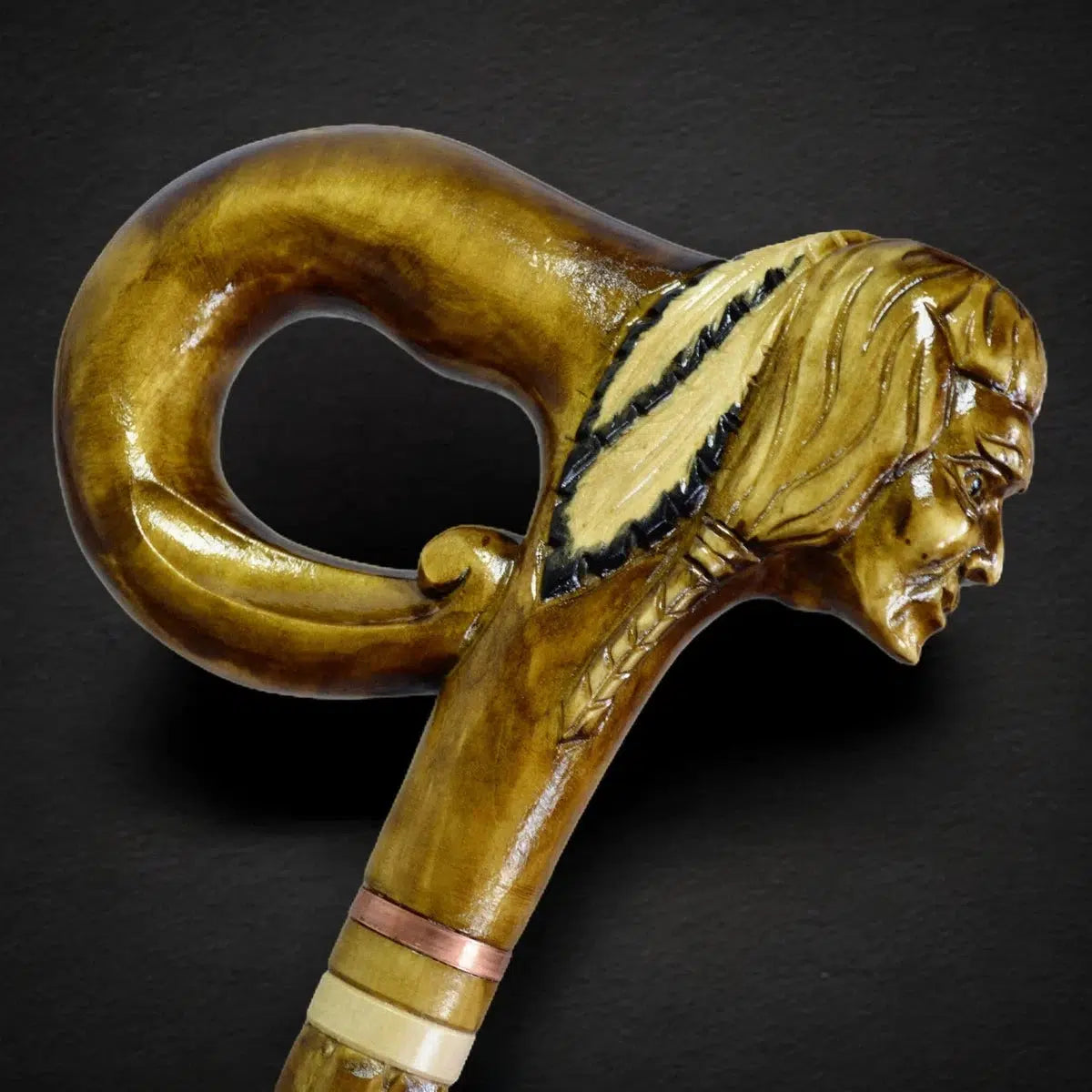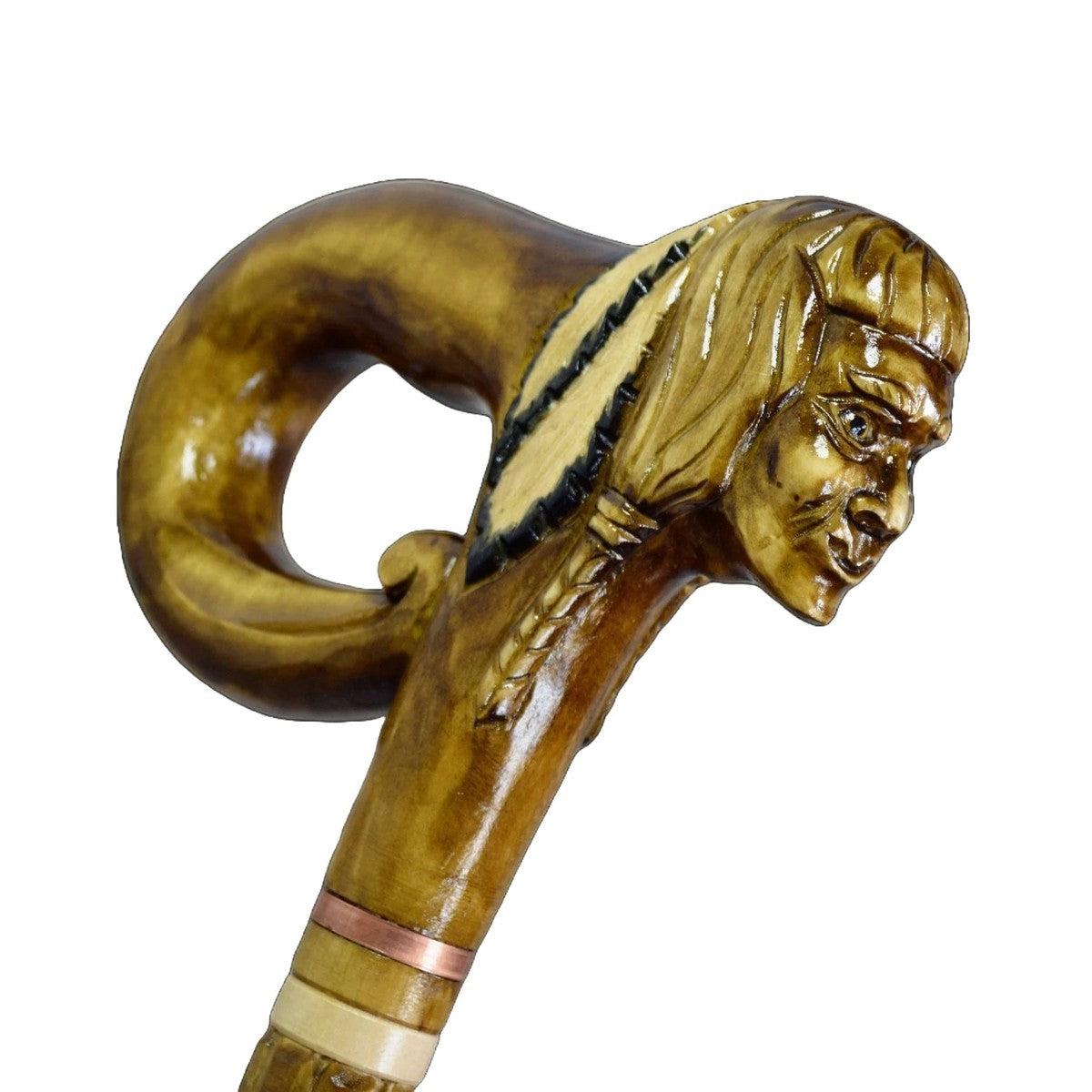 Custom Carved Native American Walking Stick - Tribal Chief