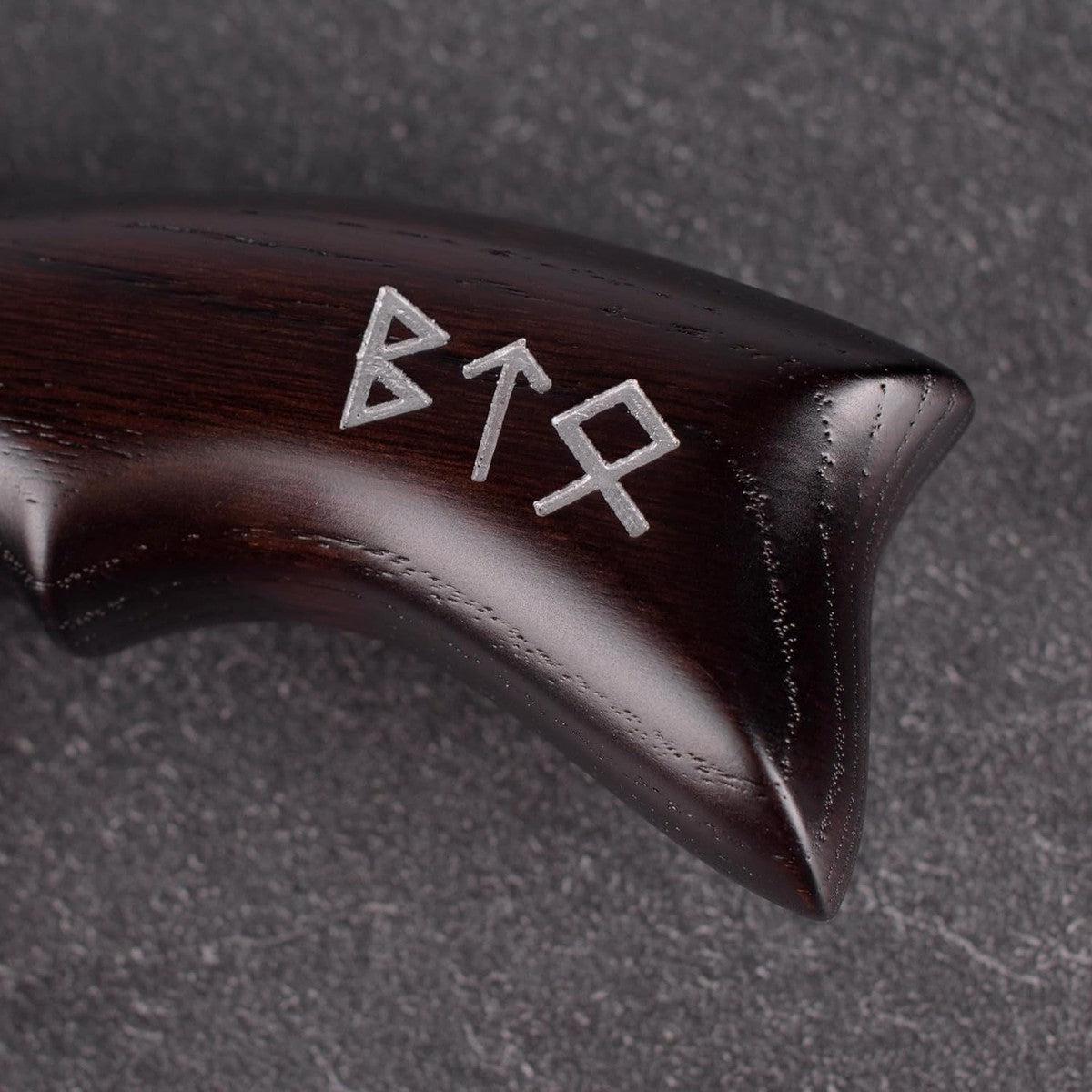 - Adorned with a solid nickel silver Viking Berserker head for an imposing aesthetic